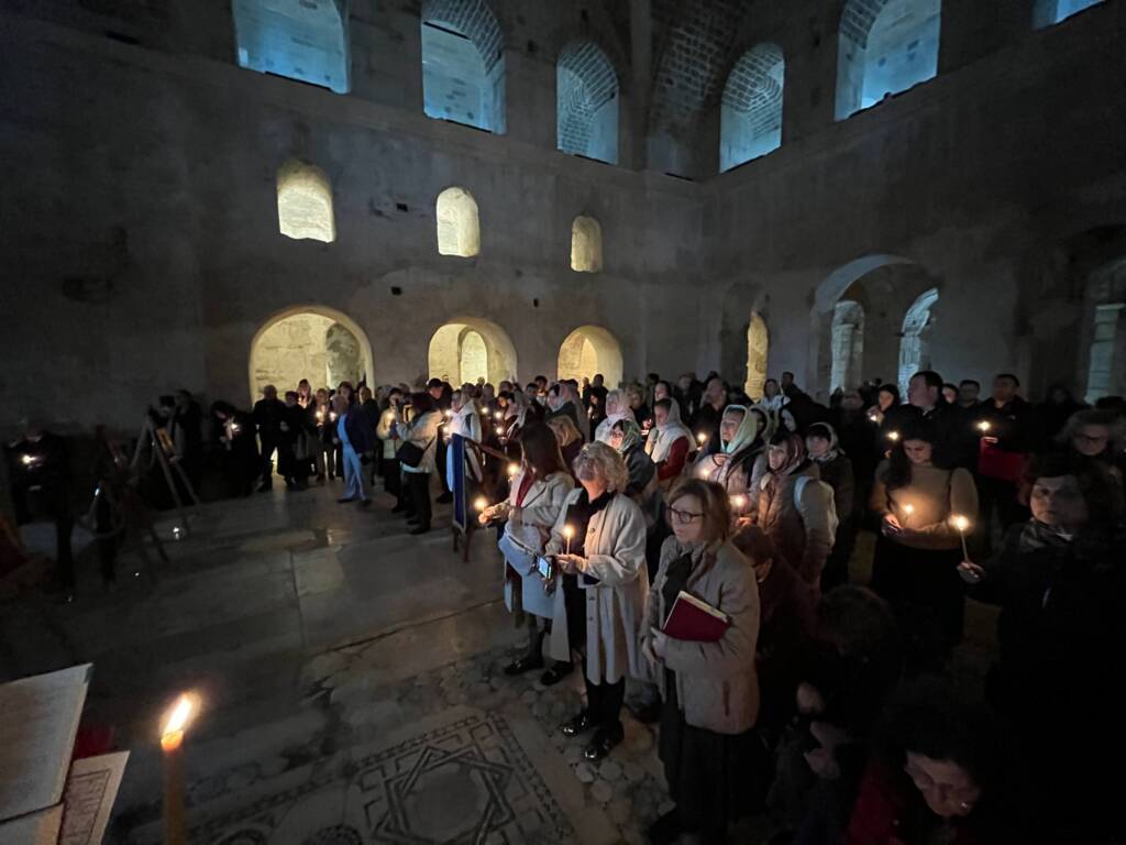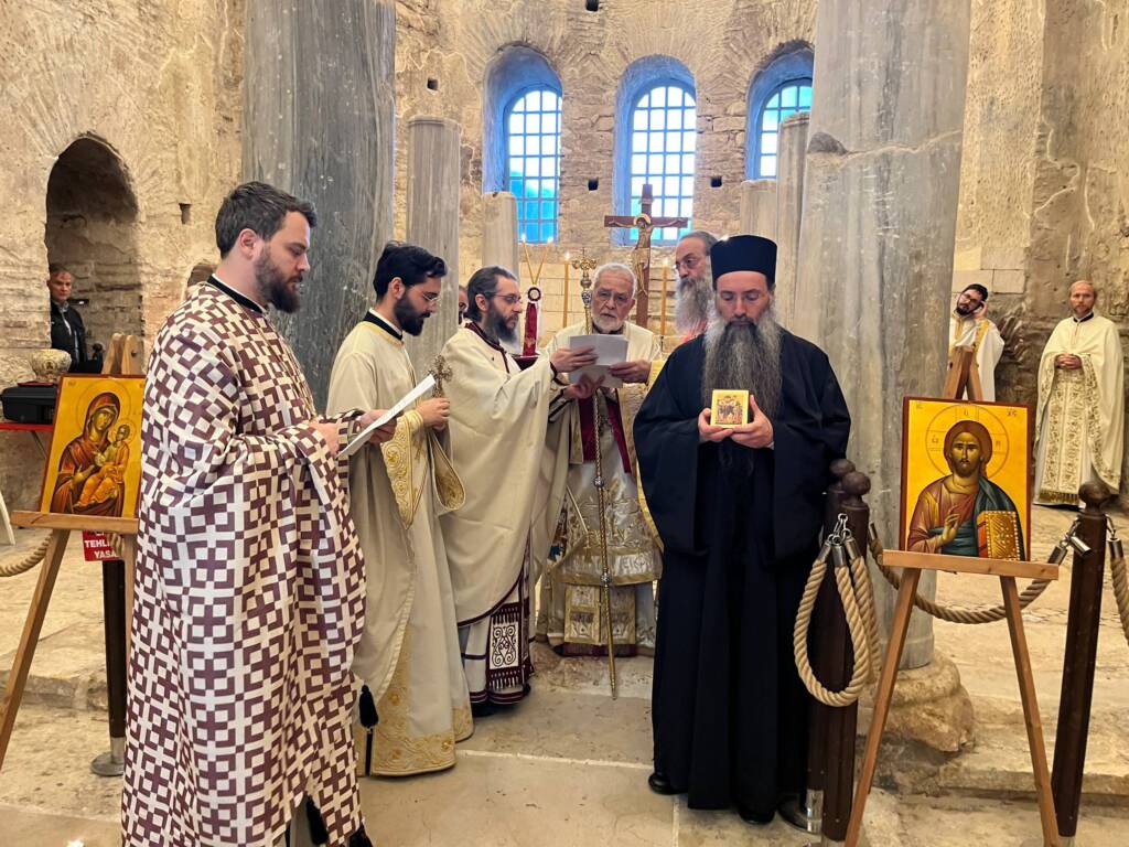 The psalmody was performed in part by the choir of the church of Saint Alypios in Antalya.